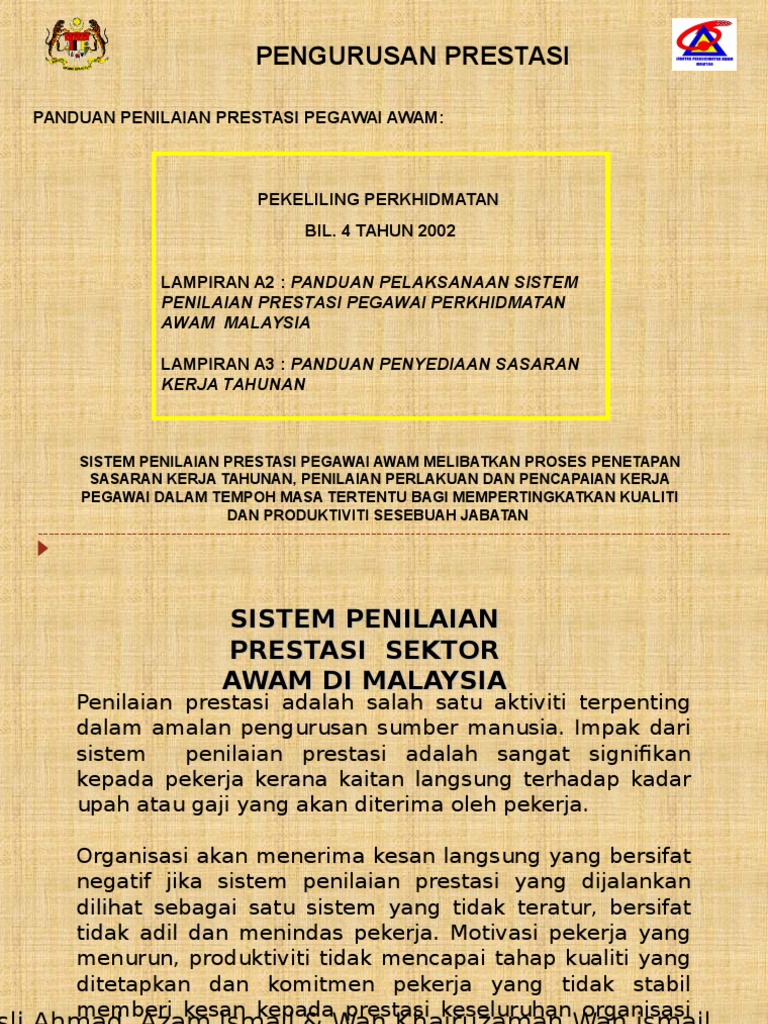 3 tahun 2009 borang penilaian prestasi khas bagi pegawai perkhidmatan awam. Kosep penilaian prestasi kepala sekolah penilaian prestasi kerja kepala sekolah adalah suatu proses penilaian yang dilakukan secara sistematis oleh pejabat penilai terhadap sasaran kerja dan perilaku kerja dari konsep tersebut ada tiga obyek penilaian terhadap prestasi kerja kepala sekolah. Surat edaran bantuan khas kewangan tahun 2021 mua. Penilaian prestasi kerja pegawai negeri sipil dilaksanakan secara sistematis yang penekanannya pada tingkat capaian sasaran kerja pegawai atau tingkat capaian hasil kerja yang telah disusun dan disepakati bersama antara pegawai negeri sipil dengan pejabat penilai. Hasil penilaian kinerja ini bisa menunjukkan apakah sdm sudah memenuhi tuntutan perusahaan atau masih belum.