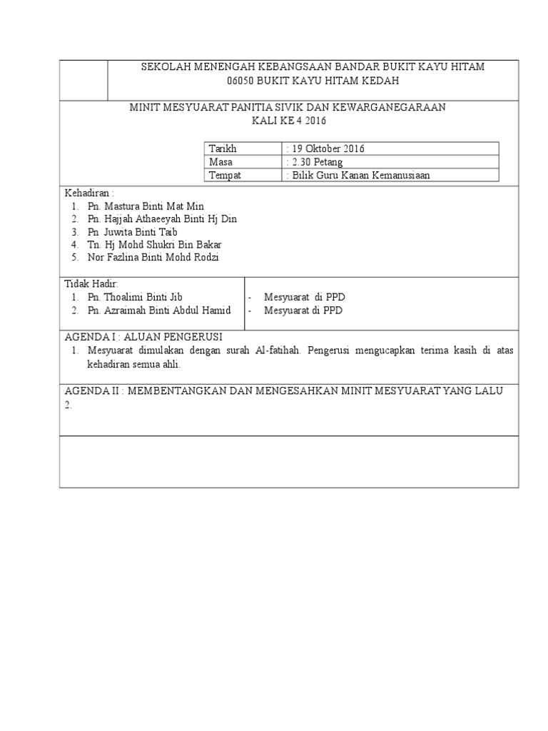 Pn.nachi (pengusaha kantin) tidak hadir : Templat minit mesyuarat ini dibuat dalam dropbox paper, satu ruang kerja kolaboratif yang membolehkan pasukan mencipta dan berkongsi idea awal. Savesave minit mesyuarat english bil.1 for later. Paper memudahkan tugas mengambil nota mesyuarat, memberikan tugasan, membina idea kreatif dan menguruskan projek. So please help us by uploading 1 new document or like us to download 0 ratings0% found this document useful (0 votes). Minit mesyuarat pertama program pestatanglung 1 malaysia d'kajai iii tarikh : Download minit mesyuarat rmt 2018. Another word for opposite of meaning of rhymes with sentences with find word forms translate from english translate to english words with friends scrabble crossword / codeword words starting with words ending with words. Penyelenggaraan jalan mendap sk convent. Ini kerana ia akan menjadi panduan dan rujukan buat pekerja dan orang yang hadir atau tidak untuk mengetahui hasil keputusan sesuatu mesyuarat. Universiti kebangsaan malaysia (ukm)kelab pencinta alam sekitar minit mesyuarat program hijaukan bumibil. Abart in joining the english panel this year.