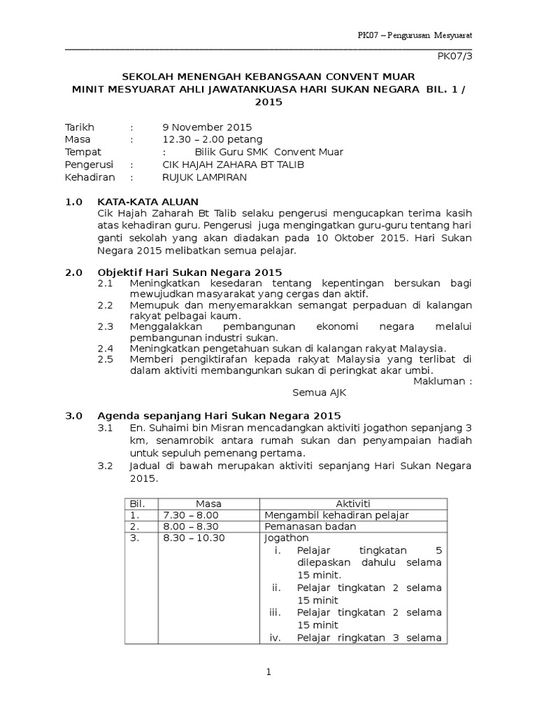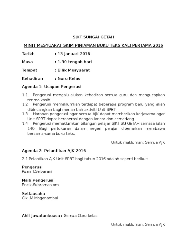 Use the download button below or simple online reader. Jenis jenis contoh minit mesyuarat. Person recording the minutes of a meeting. Minit mesyuarat jawatankuasa rmt bil.1/2018. As is mesyuarat in english? Official content is only at the original page which is in english or malay. Buku ini untuk latihan para siswa. Discover mesyuarat meaning and improve your english skills! Ini kerana ia akan menjadi panduan dan rujukan buat pekerja dan orang yang hadir atau tidak untuk mengetahui hasil keputusan sesuatu mesyuarat. If you want to learn mesyuarat in english, you will find the translation here, along with other translations from malay to english. Minit mesyuarat pertama program pestatanglung 1 malaysia d'kajai iii tarikh : Abart in joining the english panel this year. Ini adalah contoh minit mesyuarat pengurusan sekolah yang mengikut format spsk mac 2012 jabatan pendidikan negeri johor darul takzim yang terletak di johor bahru di malaysia.